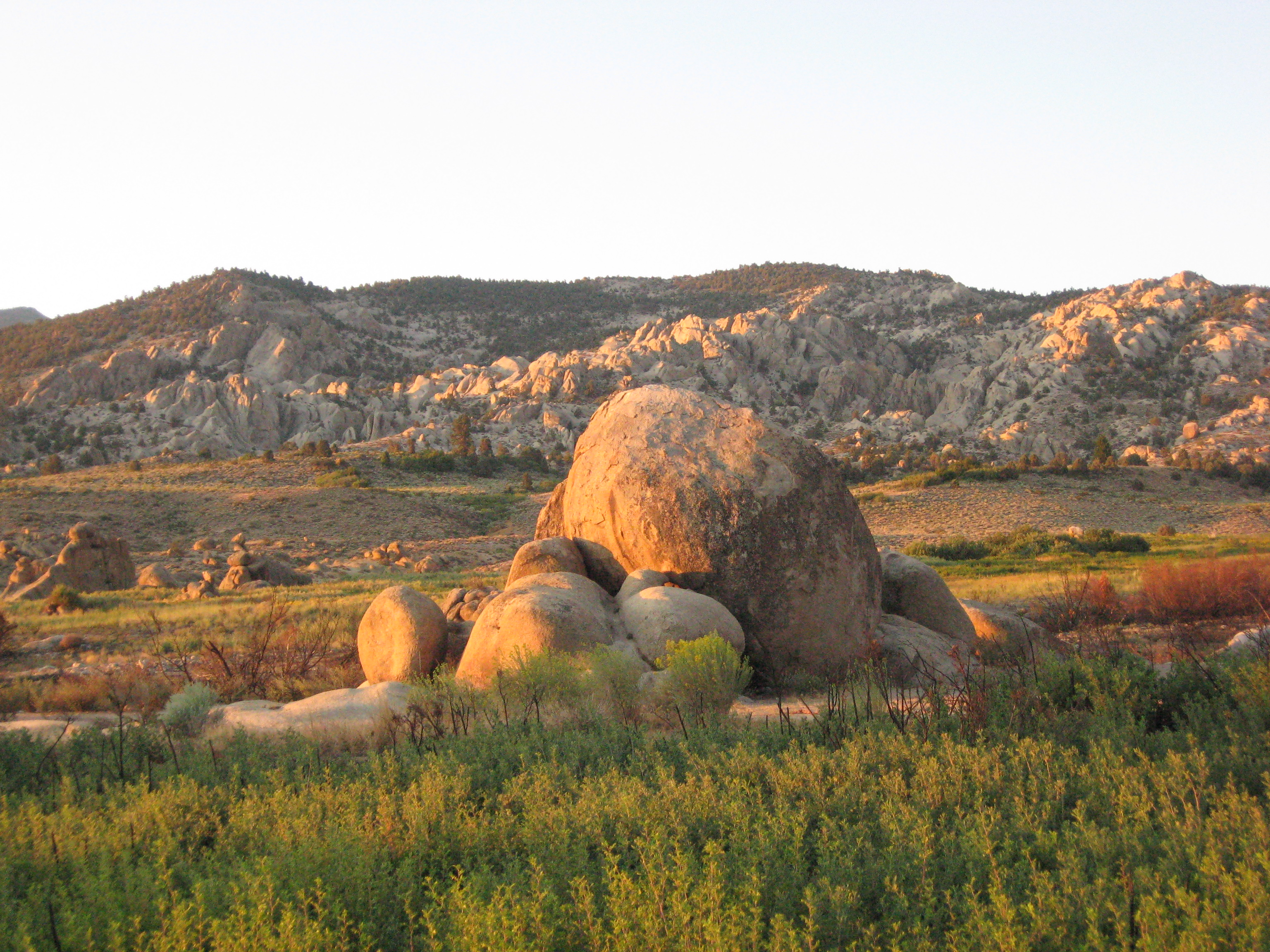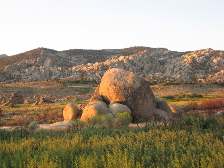 When I spend time outdoors, it fascinates me to watch how the same landscape changes significantly in different light. Here are a couple shots of the Buttermilks rock formations at sunrise.