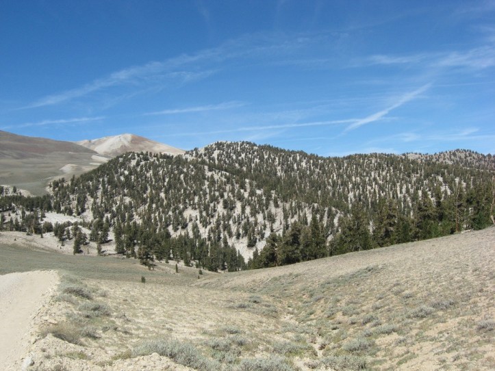 Here is a view of the landscape from the road, looking out over the bristlecone forest.