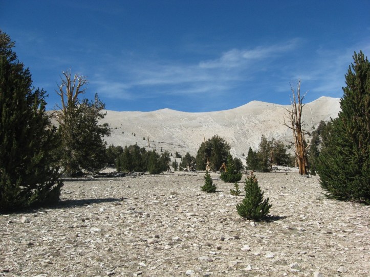 These photos were taken at Patriarch Grove at 11,000 feet. You can see why the dolomite of this range gives it the name of the White Mountains.