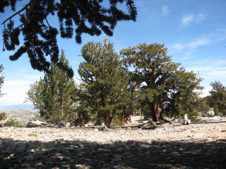 I hardly know what to say here. Here I am, the professional writer, and words are not coming easily. I don’t know how to describe the feeling of this pilgrimage to the world’s oldest living beings, a longtime dream fulfilled. A number of the bristlecones in the White Mountains are nearly 5,000 years old.