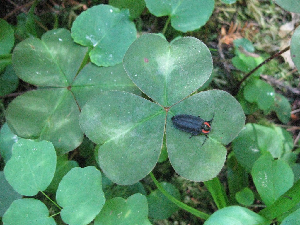 Here’s a close-up of a redwood sorrel leaf and a forest inhabitant.