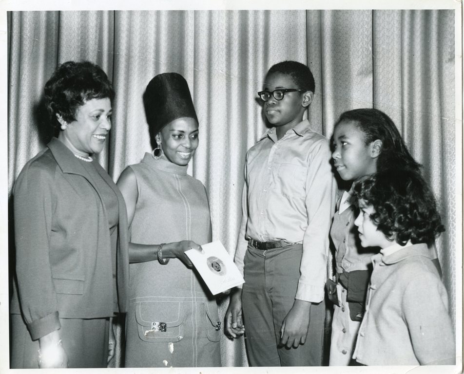 I want to let you know that I have a couple keepsakes from a particularly special event when I was Mrs. Blackwell’s student in 1968. She arranged for exiled South African singer and anti-apartheid activist Miriam Makeba to come to Bagley. This was at the height of Makeba’s fame for her worldwide hit song Pata Pata. The school district arranged to take a photo that was published in the African American newspaper, the Detroit Chronicle (now the Michigan Chronicle), on January 6, 1968. I have both an original print of the photo and a clipping from the newspaper including the date of publication.