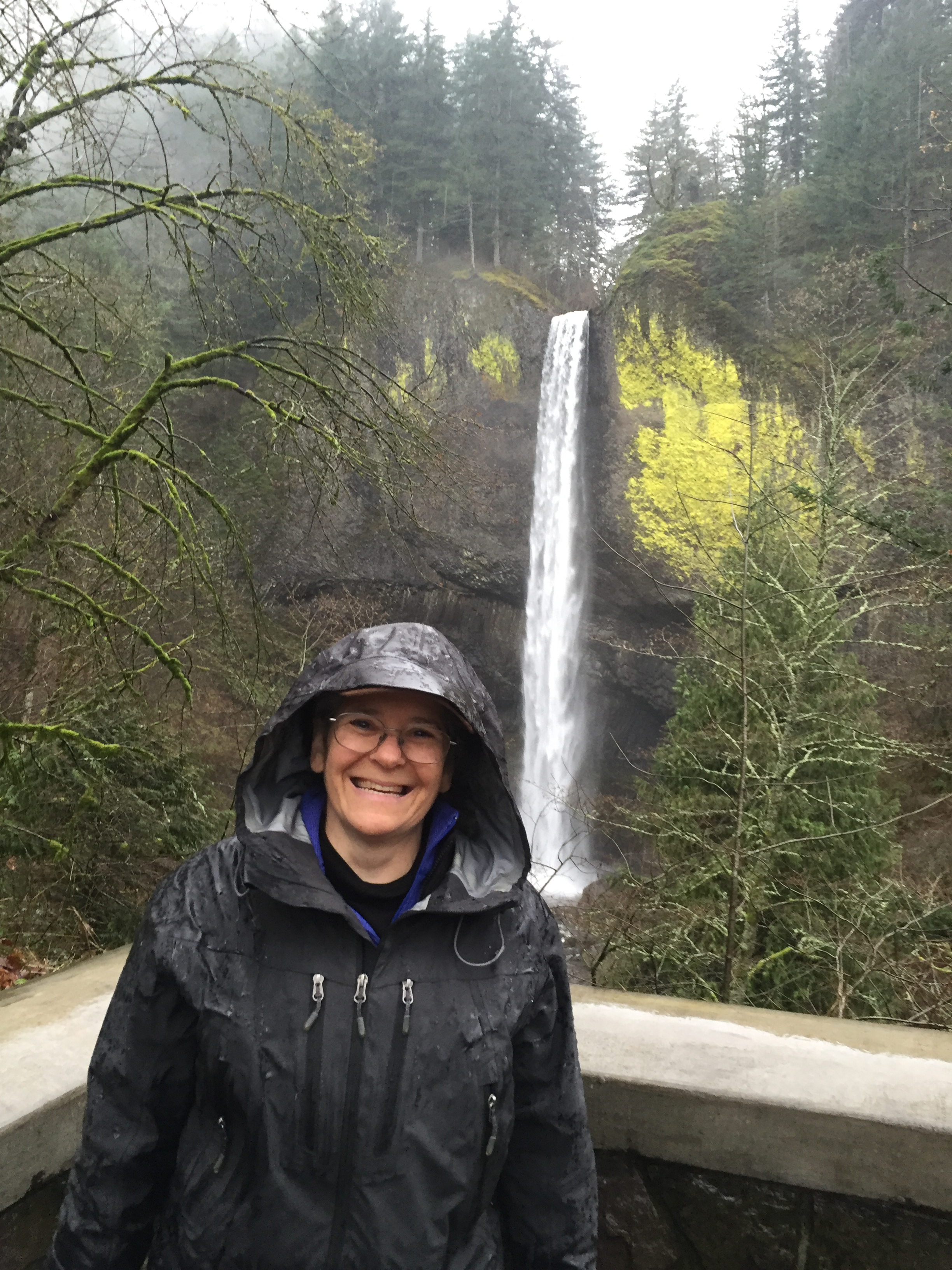 Standing beside Latourell Falls, Columbia Gorge National Scenic Area