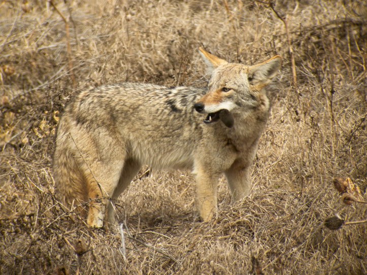 I stopped when the coyote and I met eyes, I descending the Marin Headlands trail and she standing a couple hundred yards away down the hill. For the next few minutes we meandered in the same direction across the landscape, with me stopping to let her move on unhurried before we would cross paths again. When I started my car to head home, she emerged once more. I cut the engine and watched as she spotted a gopher, got into position, pounced, stuck her nose in the hole when she missed, and eventually moved off.
