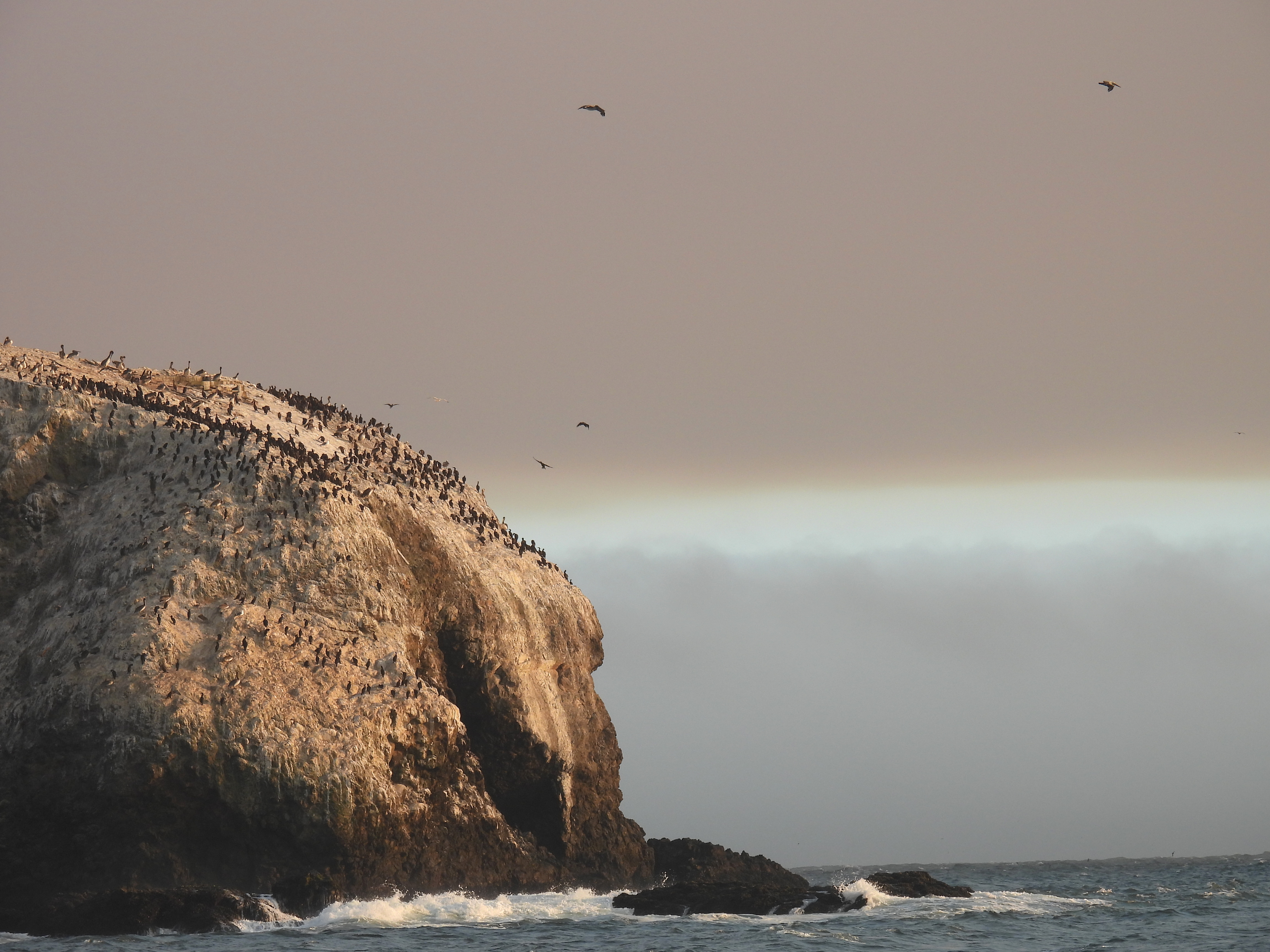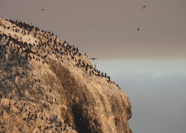 I watched the seabirds coming and going from appropriately named Bird Island, silhouetted against that strange sky. The cormorants traveled alone in straight lines, the solitary gulls meandered, and brown pelicans gracefully circled in groups and glided just above the water. I was watching a moving painting that was simultaneously ominous and beautiful.