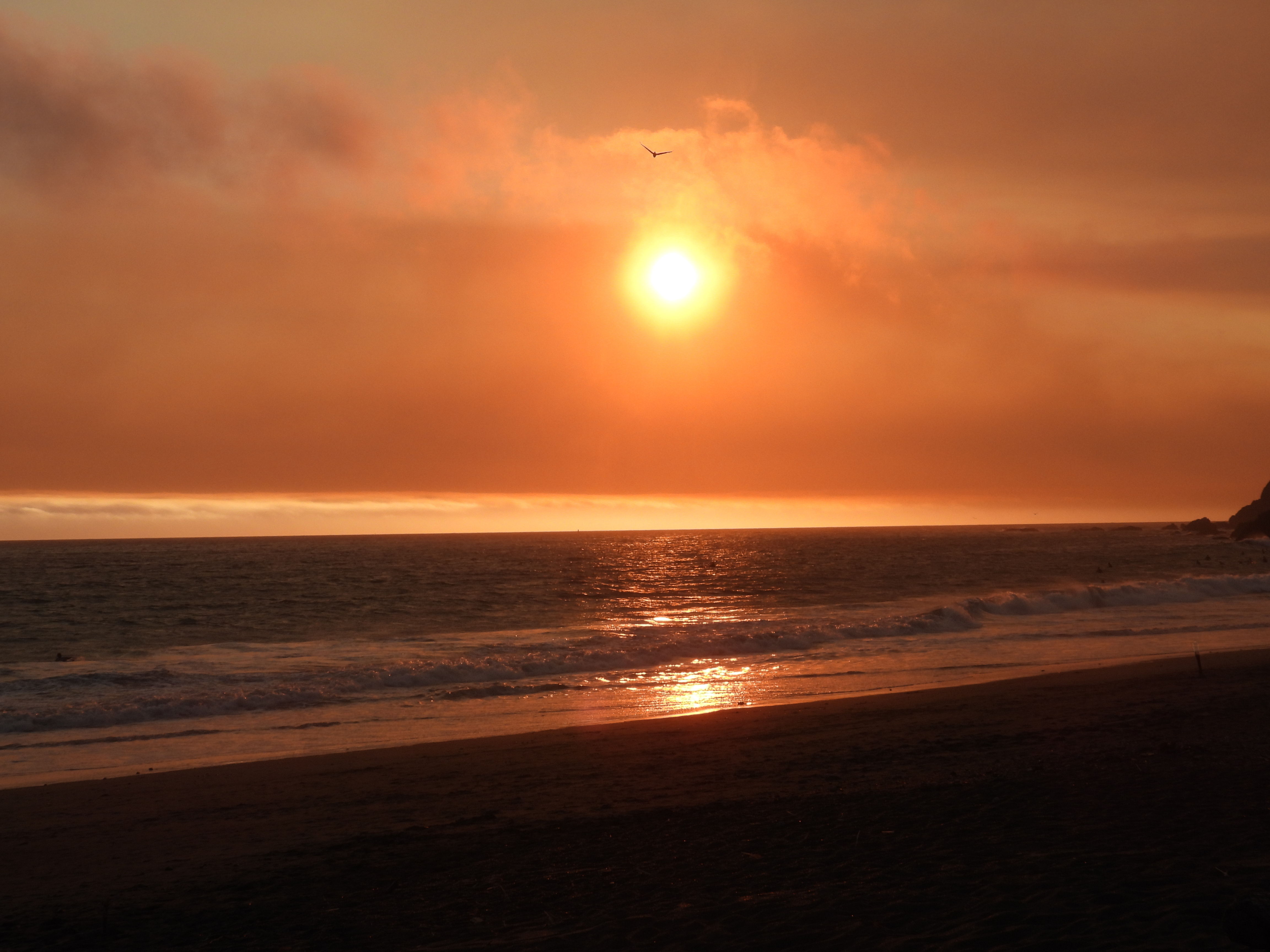I lingered to take in the fresh salt air. Before I left to sequester indoors with my air filters again, I watched the sunset with the eerie orange glow that only smoke can create. And willed the fog to come ashore.