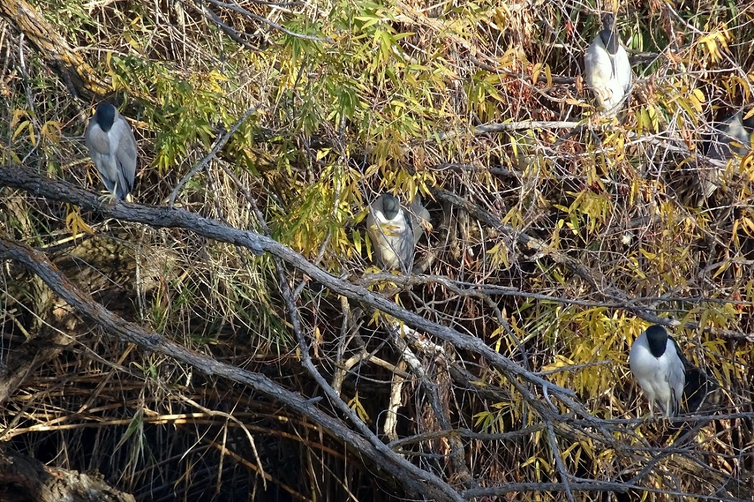 A few of dozens of black-crowned night herons sleeping at Colusa National Wildlife Refuge
