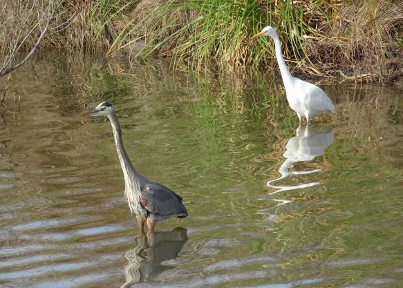 Great blue heron and great egret at Arcata Marsh and Wildlife Sanctuary