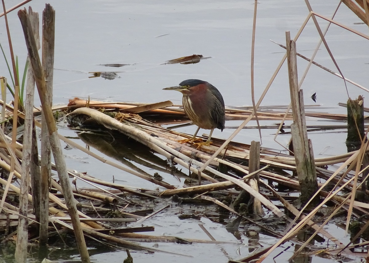 Throughout the year when I explore wetlands, I walk quietly and peer into the thick reeds in case I’m lucky enough to spot a green heron—from a distance, because they are easily disturbed. When I spy one, tucked motionless in its hiding place, I am mesmerized.