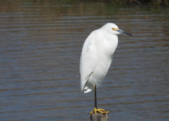 When I first saw a snowy and great egret side by side, I thought the smaller snowy was a juvenile of the same species. They have wonderful yellow feet.