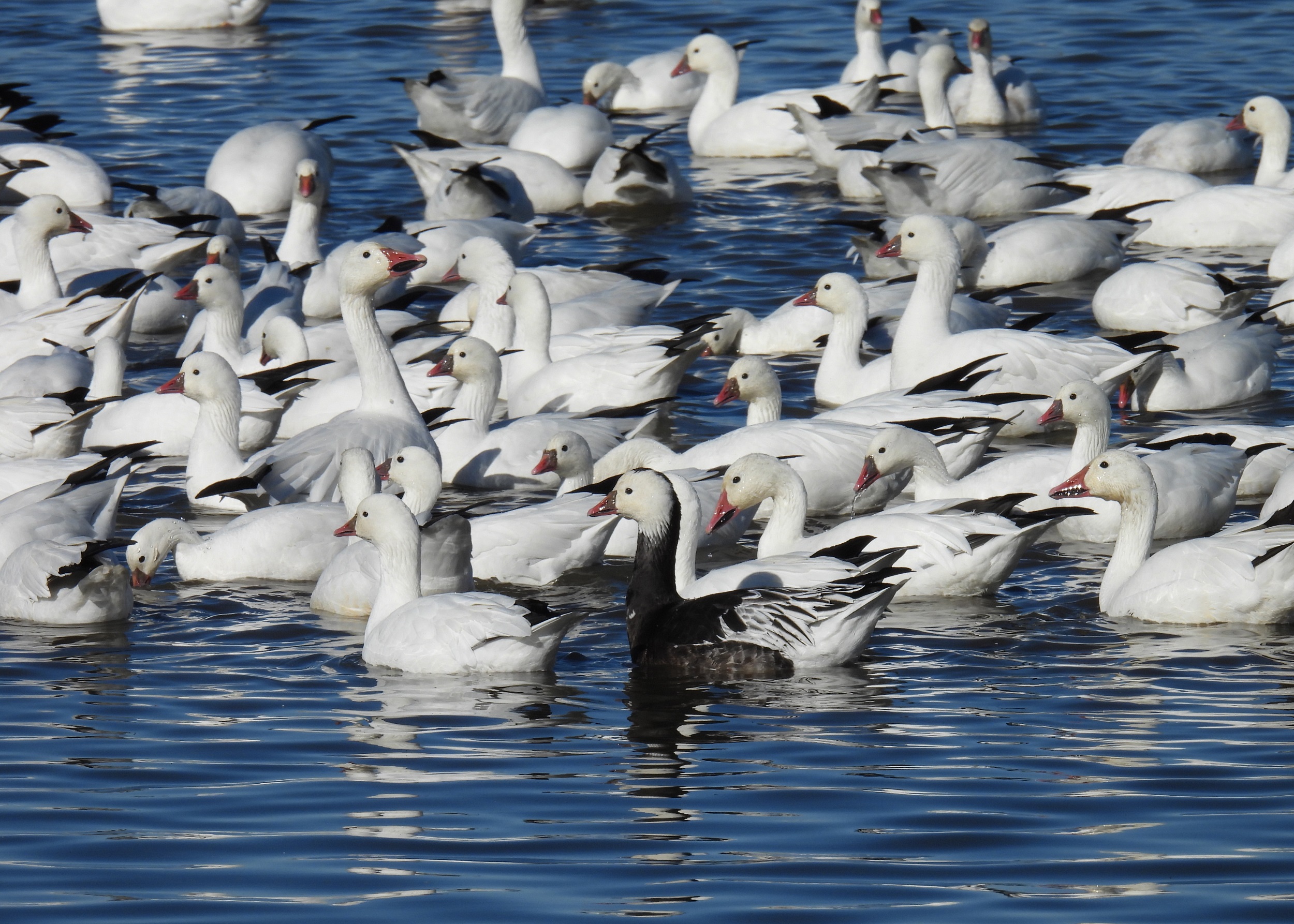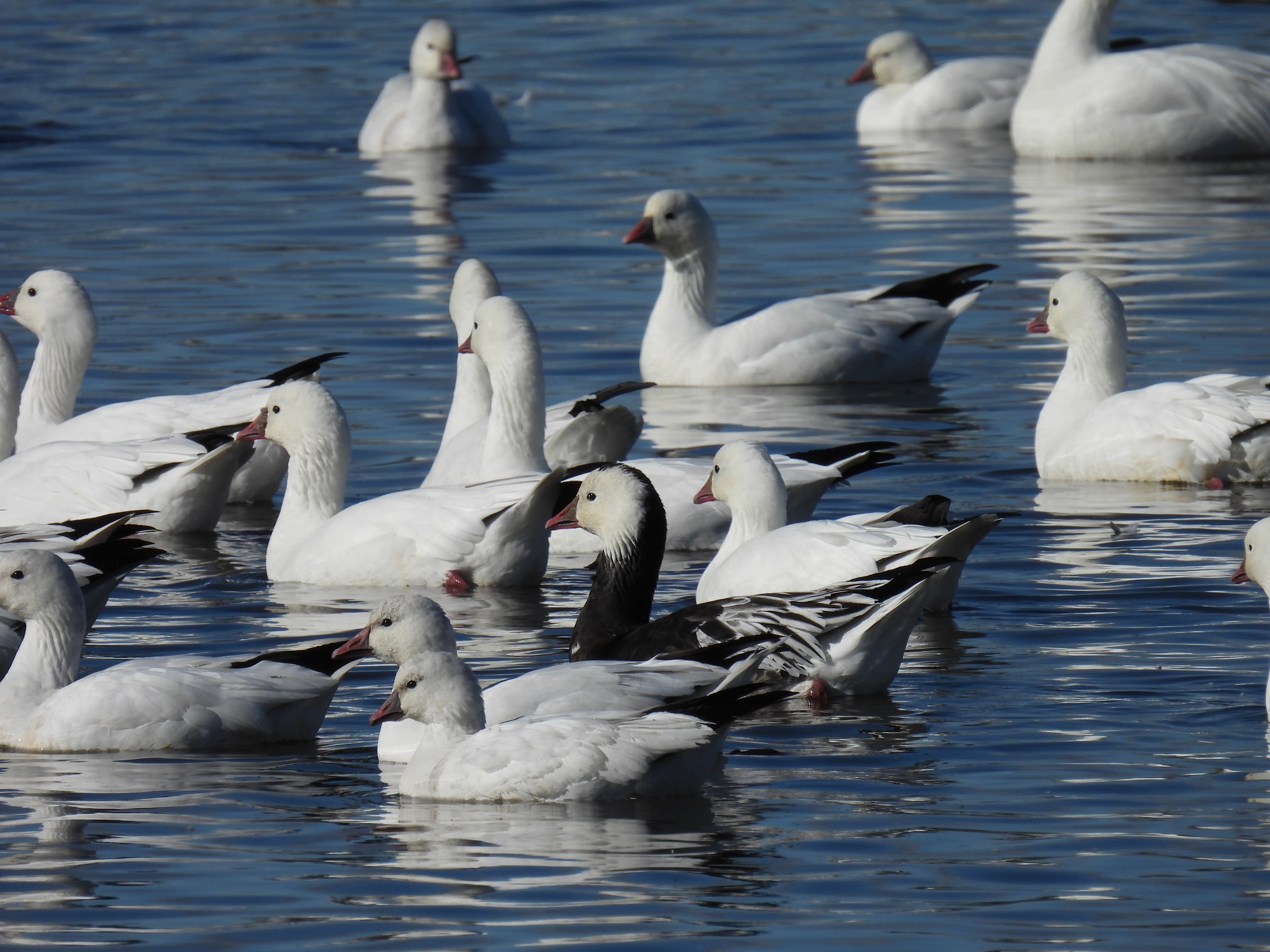 Among the thousands of wintering white geese whose company I seek out every winter are a few that have different coloring—dark bodies and necks instead of being white. While this pattern is officially called a dark morph, I prefer the common term of blue goose. I’ve been lucky to spot a few over the years.