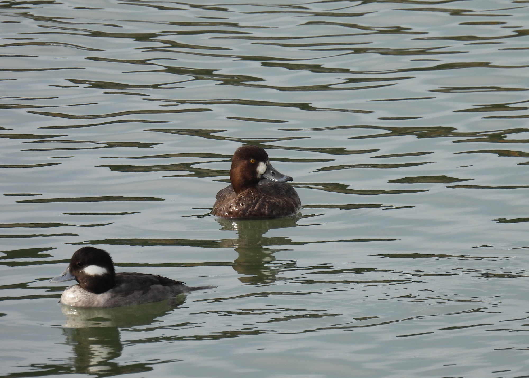 Less colorful than their male counterparts were this female bufflehead and greater scaup