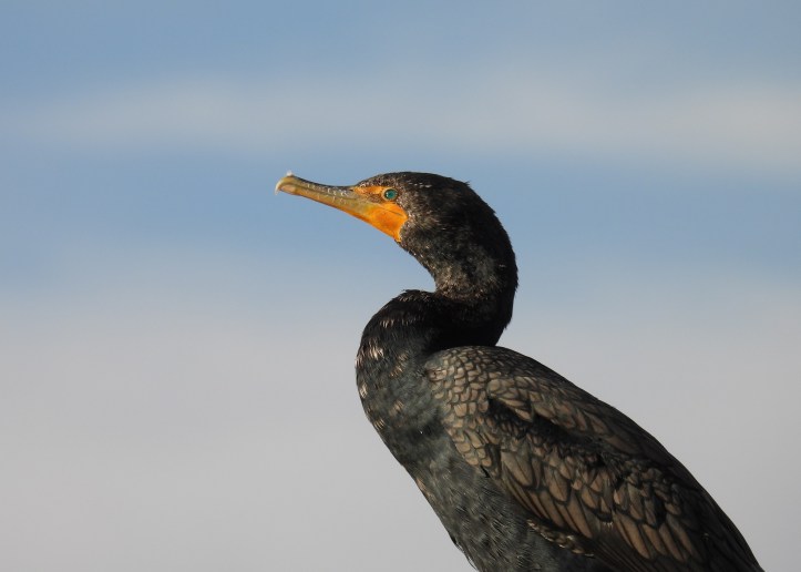 A closer look reveals a cormorant’s blue eyes and textured feathers