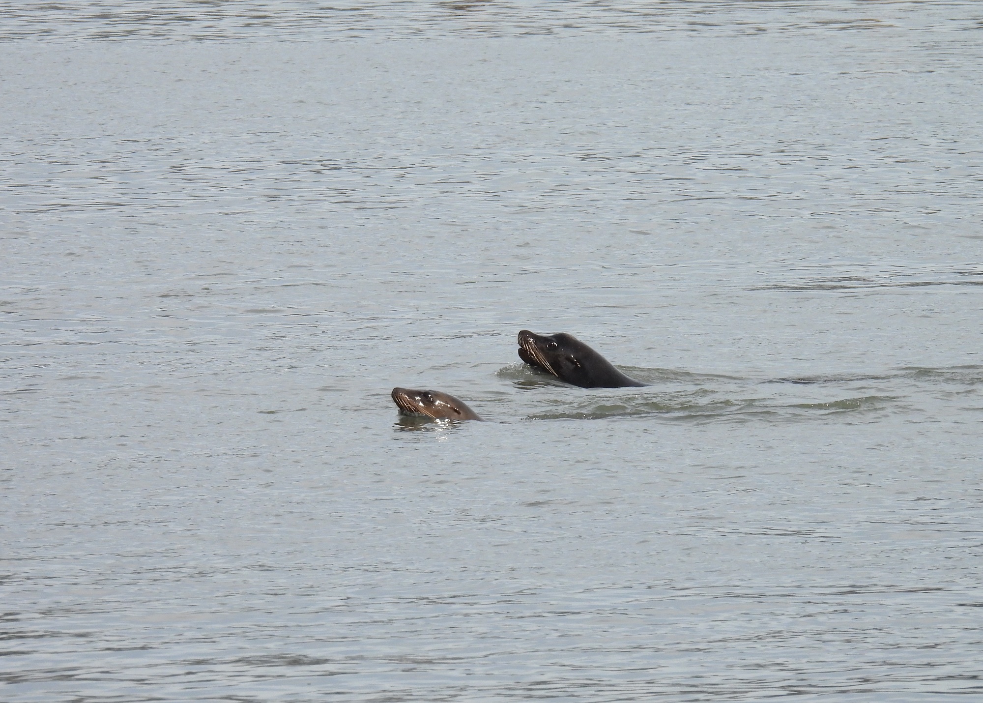 As they dove and surfaced in the harbor, the size difference between the males and females was striking. The males were also easy to spot with the sagittal crest on their heads.